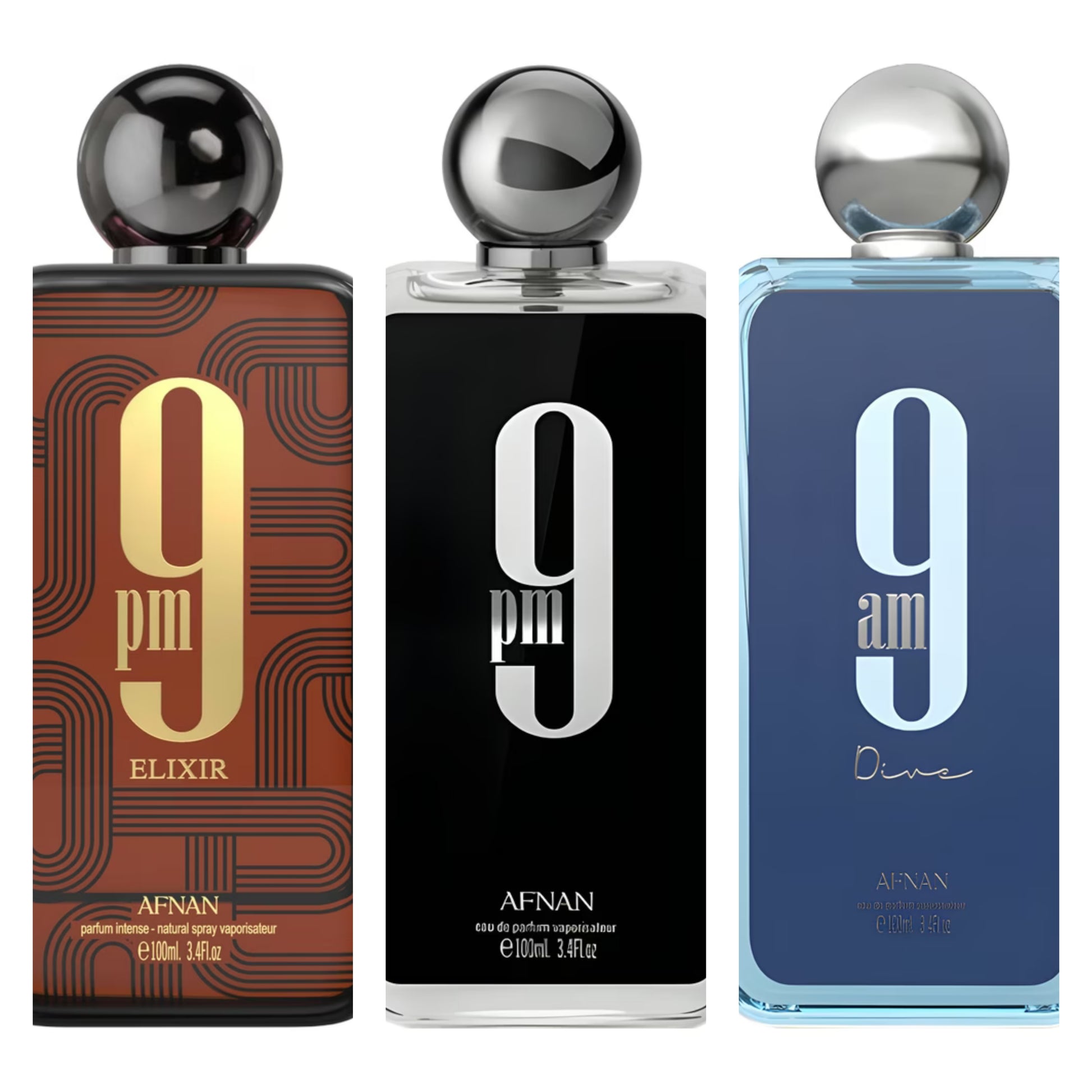 In this bundle you will receive a 3ml of the following Afnan 9AM & 9PM fragrances: